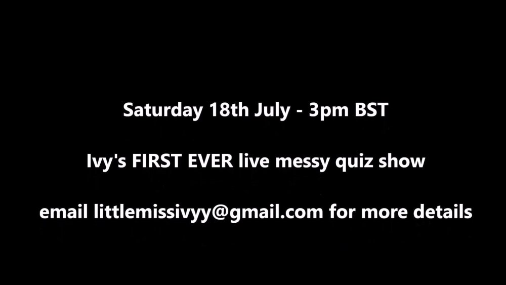 Watch my video https://umd.net/videos/first-ever-live-messy-show-where-you-ask and then email littlemissivyy@gmail.com to get your invite. See you there :) xxx